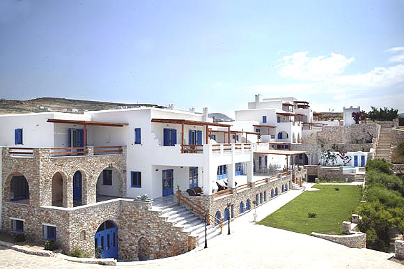 The 51 double rooms, 8 superior rooms, 2 suites, 7 apartments for 3-6 people, with kitchenette, have balconies with a sea-view and a view to Parikia.